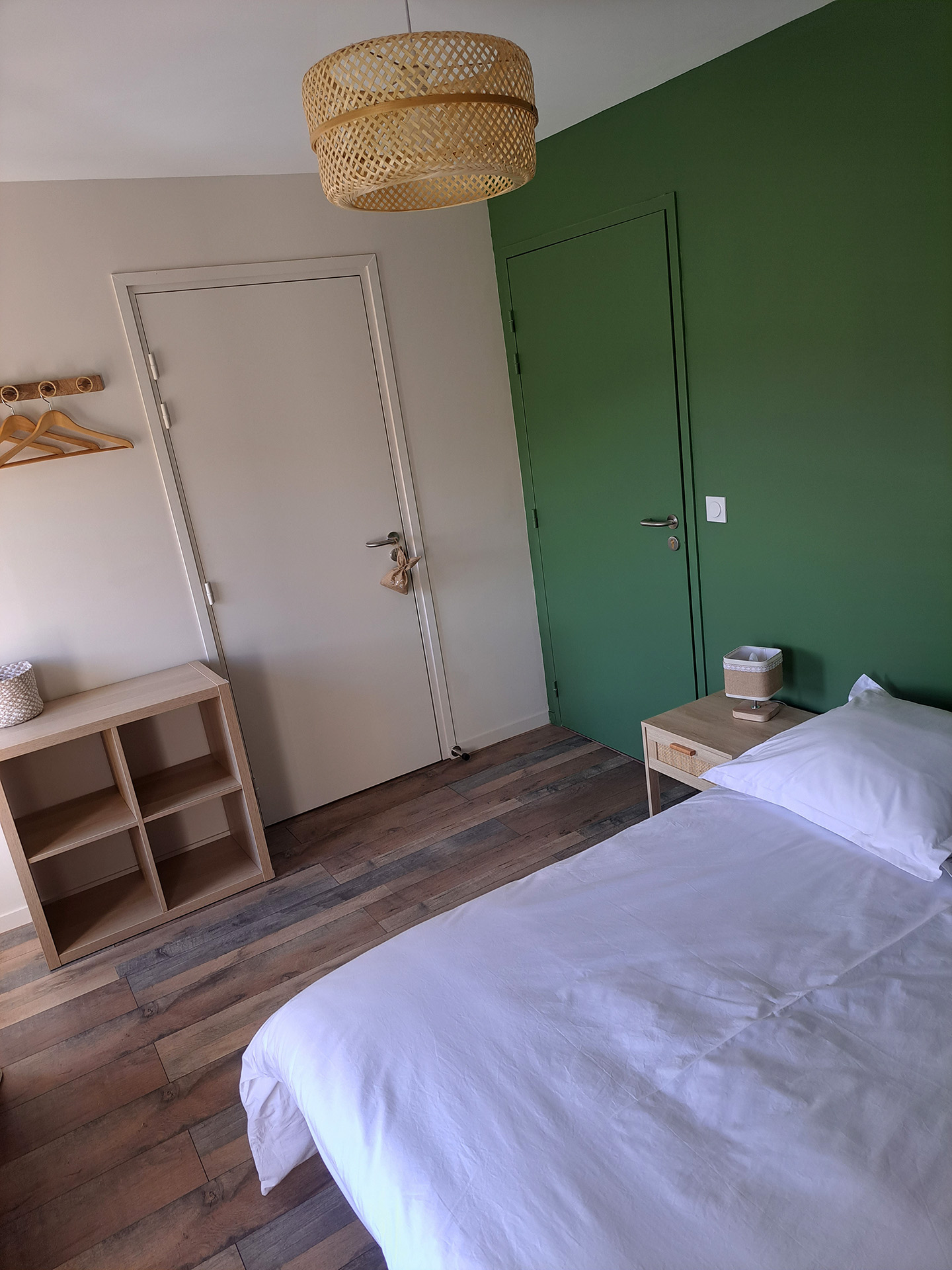 - Les chambres en lits 140 chantent le vert clair et le beige.