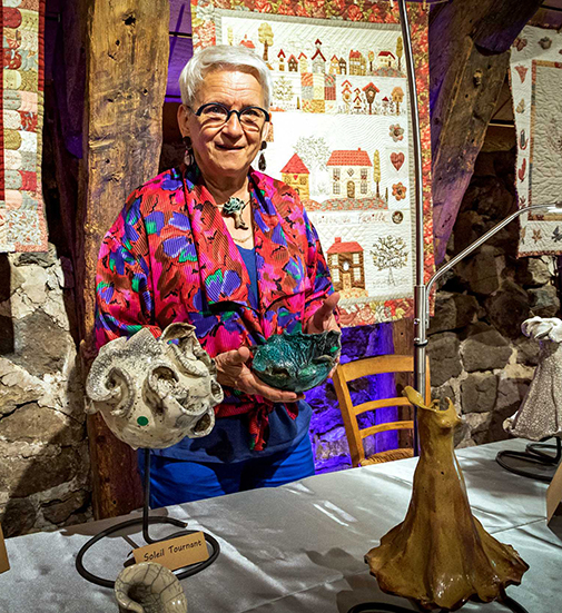 Les cylindres cuits au four et assemblés sur une tige métallique ont donné naissance à l’emblème de l’association Méz’Art, emblème visible maintenant au départ du sentier artistique créé lui aussi en 2021 pour faire découvrir la beauté de la région via un parcours ludique.